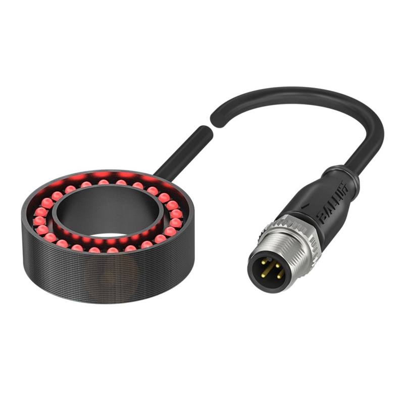Éclairage Vision, Raccordement: Câble avec connecteur, Connecteur M12x1 mâle, 4 pôles, 0.3 m, Version: Éclairage annulaire, Dimensions: Ø 40.5 x 13 mm, Tension d'emploi nominale Ue DC: 24 V, Consommation de courant max.: 146 mA, 208 mA (Boost mode), Mode de fonctionnement: Normal, Amplifié, Entrées numériques: Déclencheur, Matériau: Aluminium anodisé, noir, Surface lumineuse: Ø 38 mm/Ø 26 mm, Type de lumière: LED à lumière rouge, Longueur d'onde: 616 nm, Angle de réflexion: 40 °, Température ambiante: 10...50 °C, Homologation / conformité: CE, UKCA, WEEE, Classe de protection: IP20