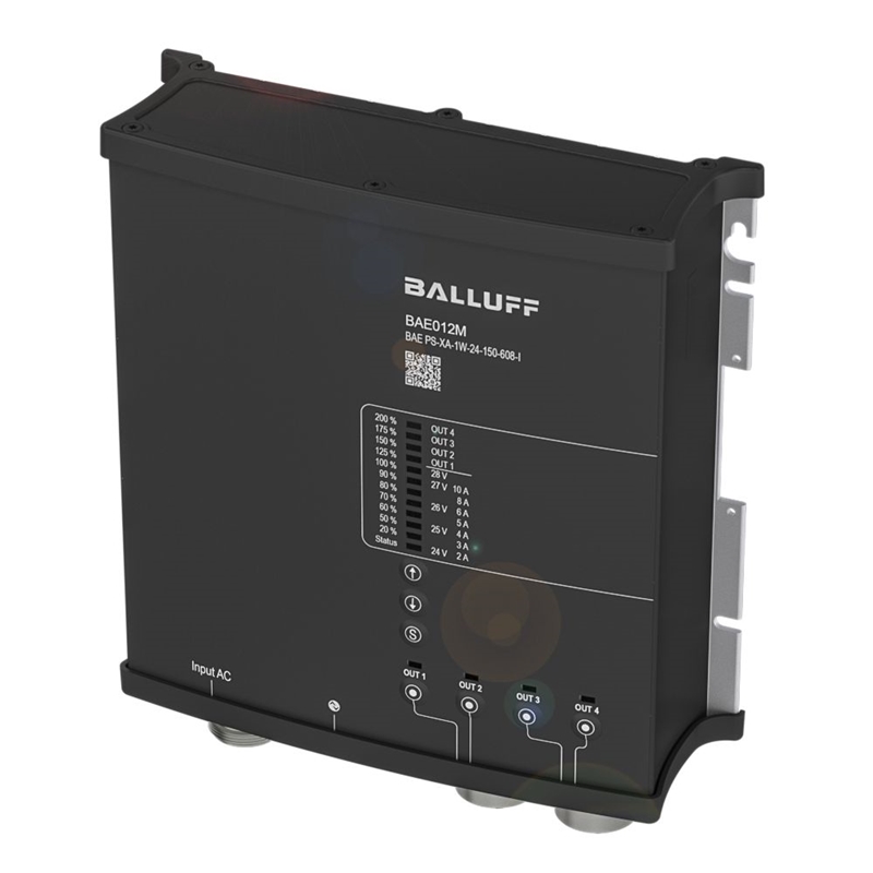 Alimentation électrique, Puissance de sortie max.: 360 W, Tension de sortie: 24 - 28 V DC, Courant nominal de sortie: 15 A, Tension d'entrée: 85...264 V AC, Connexion (alimentation en tension IN): Connecteur 7/8"", mâle, 3 pôles, Connexion (alimentation en tension OUT): 7/8""x2Connecteur femelle, Température ambiante: 25...70 °C, Classe de protection: IP67/IP65, Dimensions: 181 x 59 x 183 mm, Fixation: Fixation par bride, Matériau du boîtier: Aluminium PET, Homologation / conformité: CE, UKCA, cULus, WEEE