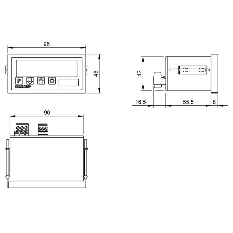 Appareil d'affichage numérique; Format: 48 x 96 mm; Fonction: Affichage de la valeur analogique; Affichage: 4 caractères, rouge, 7 segments LED; Entrée analogique: tension, courant, 0…10 V/0…20 mA/4…20 mA; Sortie analogique: tension, courant; Résolution: 12 bits; Type de raccordement: Bornier; Dimensions: 72 x 48 x 96 mm; Découpe du tableau de commande: 45 x 92 mm; Classe de protection façade avant du boîtier: IP54; Température ambiante: 0...60 °C