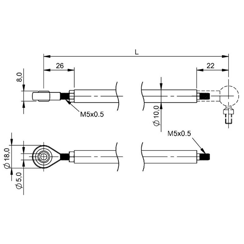 • Fixation: Œil Ø 5H7 / connecteur mâle M5x0,8
