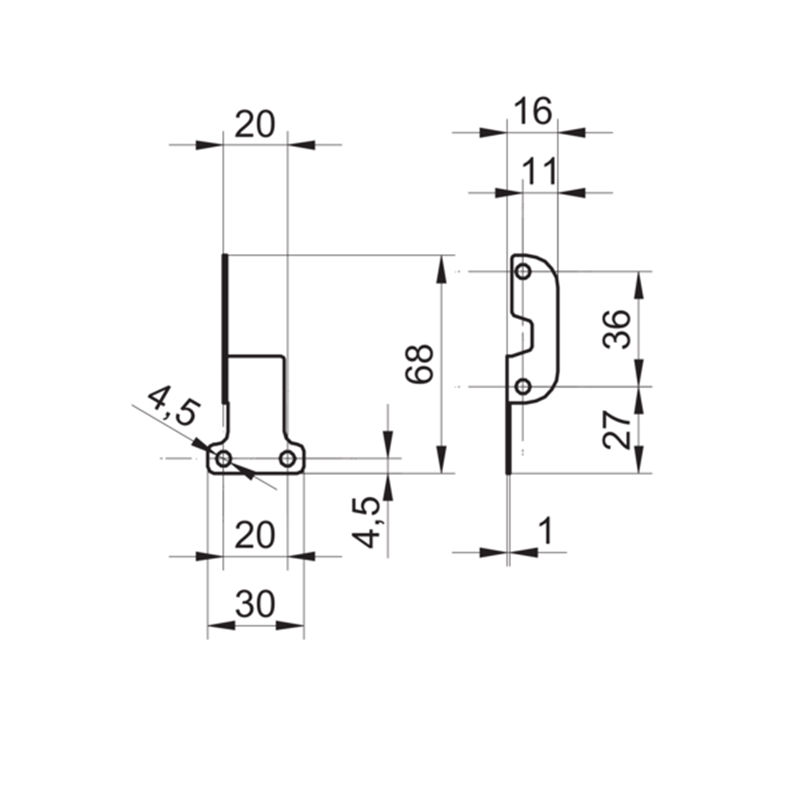 • Description: Equerre de montage pour capteur à ultrasons NextGen U500 pour rétrofit avec série UNDK 30