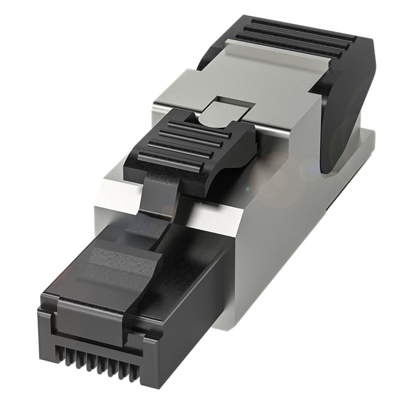 Connecteur, Raccordement A: Connecteur mâle RJ45, droit, 8 pôles, Nombre de contacts raccordables: 8, Fixation torons: Technique de pénétration, Diamètre de câble D: 5...9 mm, Tension d'emploi Ub: 50 VDC, Courant nominal (40 °C): 1.3 A, Classe de protection: IP20, Température ambiante: -25...85 °C, Homologation / conformité: cULus, WEEE