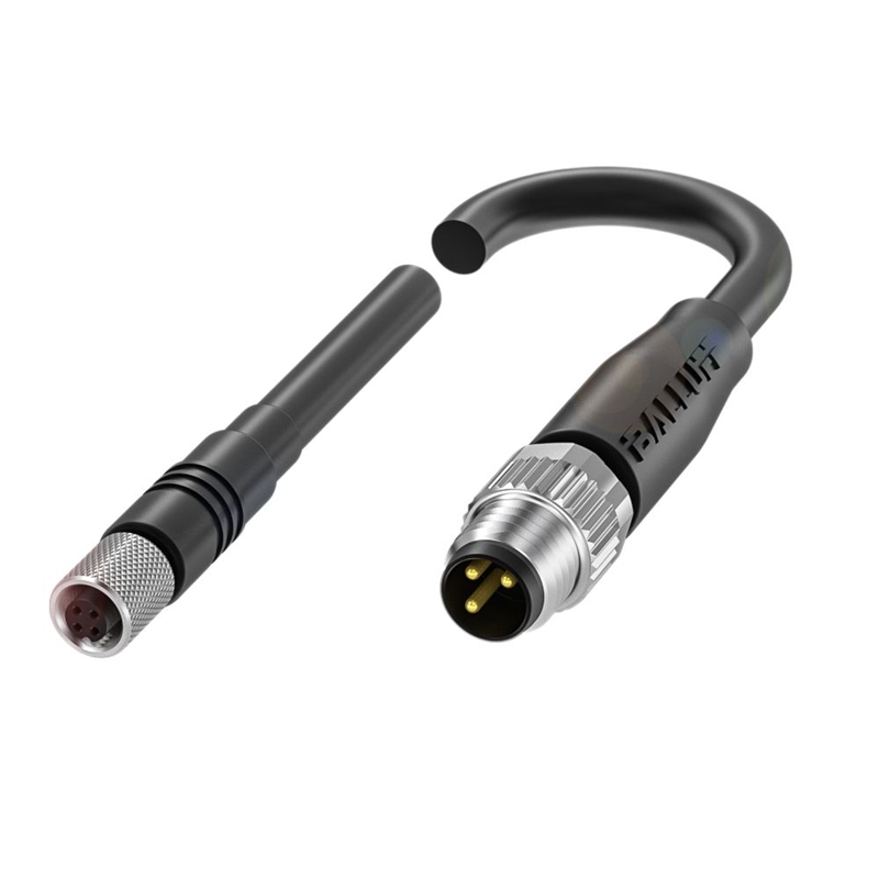 Connecteur / Câble de raccordement, Type de connecteur=M05x0,5 / M08x1, Raccordement A=Connecteur femelle M5, Raccordement B=Connecteur M8, Matériau gaine de câble=PUR, Longueur de câble L [m]=0.30 m, Nombre de conducteurs=3, Caractéristiques supplémentaires=Compatible chaîne porte-câble
