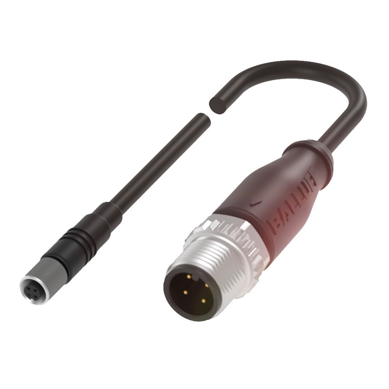 Connecteur / Câble de raccordement, Type de connecteur=M05x0,5 / M12x1, Raccordement A=Connecteur femelle M5, Raccordement B=Connecteur M12, mâle, Matériau gaine de câble=PUR, Longueur de câble L [m]=0.30 m, Nombre de conducteurs=4, Caractéristiques supplémentaires=Compatible chaîne porte-câble