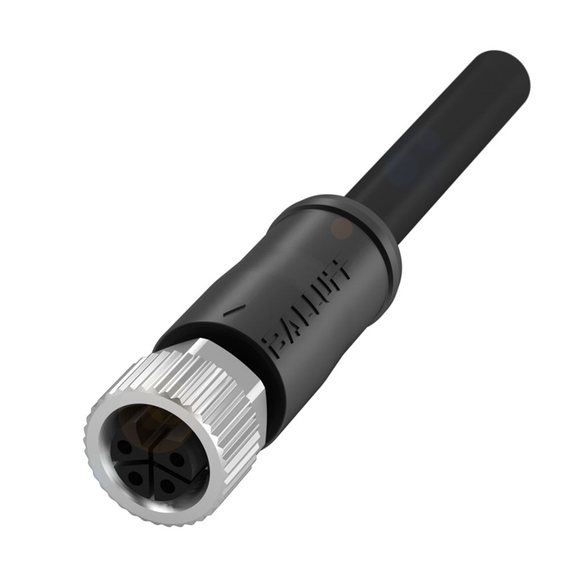 Connecteur / Câble de raccordement, Raccordement A: Connecteur M12x1, femelle, droit, 4-pôles, L-codé, Câble: PUR noir, 5 m, compatible chaîne porte-câble, Nombre de conducteurs: 4, Section de conducteur: 1.5 mm², Température de câble, pose fixe: -40...80 °C, Température de câble, pose flexible: -30...80 °C, Tension d'emploi Ub: 60 VDC / 50 VAC, Courant nominal (40 °C): 16.0 A, Classe de protection: IP65, IP67, IP69K, Homologation / conformité: CE, WEEE
