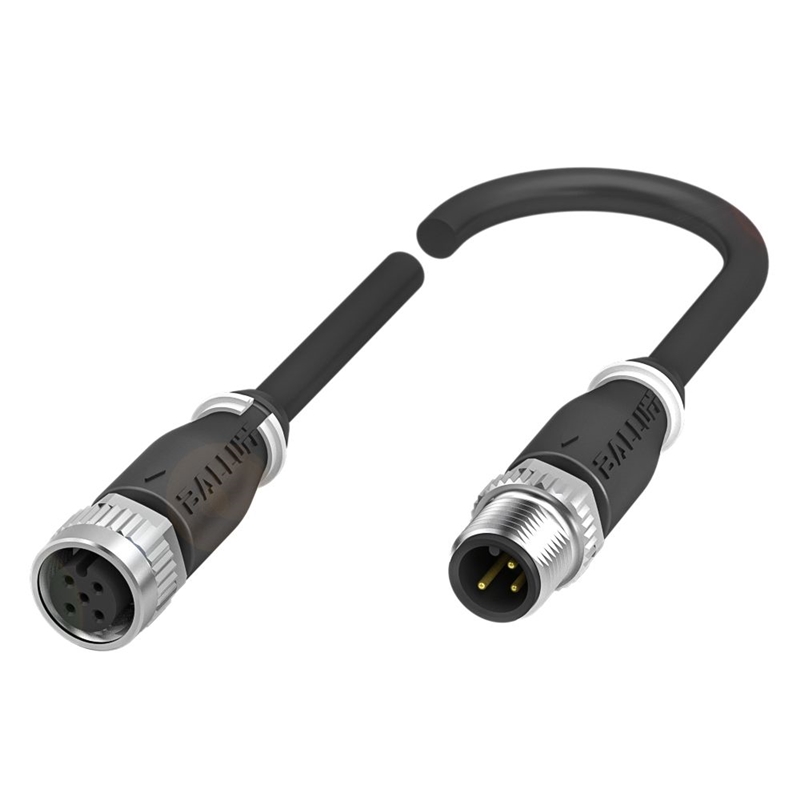 Connecteur / Câble de raccordement, Raccordement A: Connecteur M12x1, femelle, droit, 5-pôles, codé A, Raccordement B: Connecteur M12x1, mâle, 3-pôles, codé A, Câble: PUR noir, 5 m, Nombre de conducteurs: 3, Température de câble, pose fixe: -40...120 °C, Tension d'emploi Ub: 250 VDC / 250 VAC, Courant nominal (40 °C): 4.0 A, Classe de protection: IP67, IP68, IP69K/IP67, IP68, IP69K, Homologation / conformité: CE, WEEE