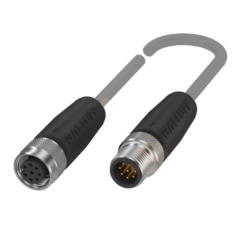 Connecteur / Câble de raccordement, Raccordement A: Connecteur M12x1, femelle, droit, 8-pôles, codé A, Raccordement B: Connecteur M12x1, mâle, 8-pôles, codé A, Câble: PUR blindé gris, 1 m, compatible chaîne porte-câble, Nombre de conducteurs: 8, Température de câble, pose fixe: -50...80 °C, Température de câble, pose flexible: -25...80 °C, Tension d'emploi Ub: 30 VDC / 30 VAC, Courant nominal (40 °C): 2.0 A, Classe de protection: IP67/IP67, Homologation / conformité: CE, cULus, WEEE