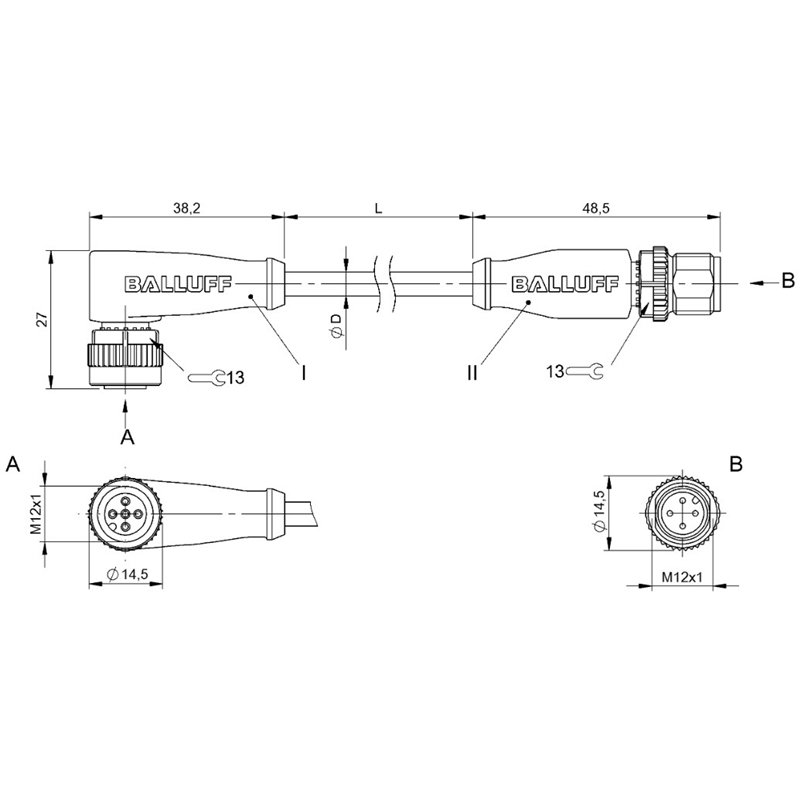 • Type: Câble de liaison, M12x1/M12x1, surmoulé/surmoulé