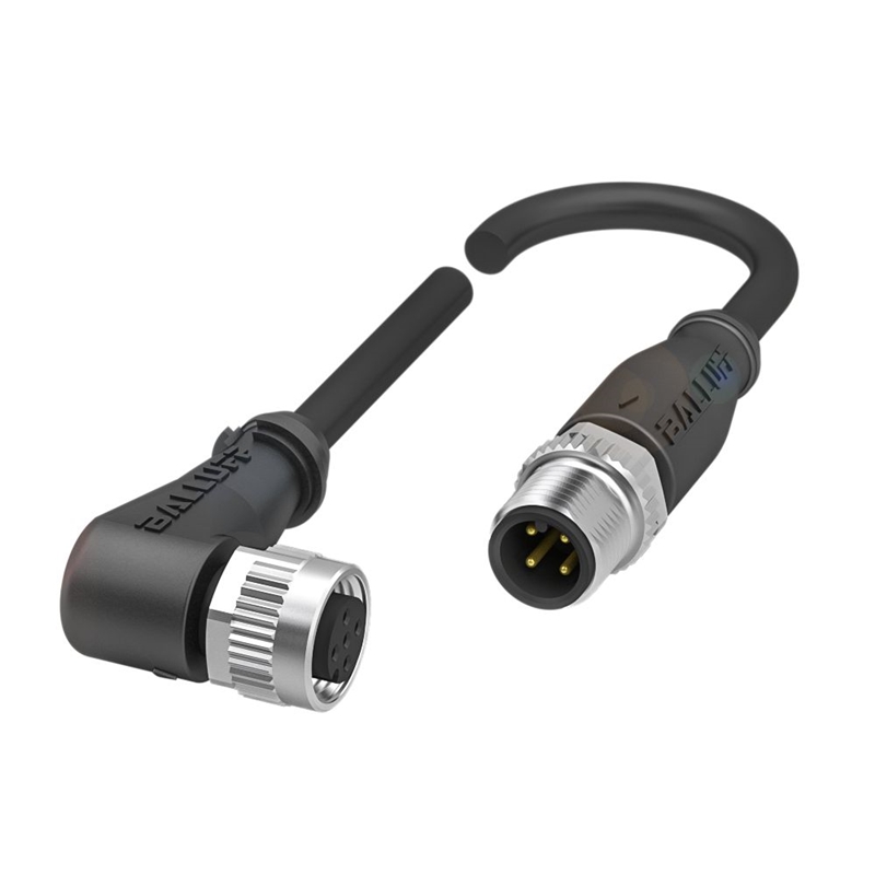Connecteur / Câble de raccordement, Raccordement A: Connecteur M12x1, femelle, coudé, 5-pôles, codé A, Raccordement B: Connecteur M12x1, mâle, 4-pôles, codé A, Câble: PUR noir, 5 m, compatible chaîne porte-câble, Nombre de conducteurs: 4, Température de câble, pose fixe: -50...90 °C, Température de câble, pose flexible: -25...90 °C, Tension d'emploi Ub: 60 VDC / 60 VAC, Courant nominal (40 °C): 4.0 A, Classe de protection: IP67, IP68, IP69K/IP67, IP68, IP69K, Homologation / conformité: CE, WEEE