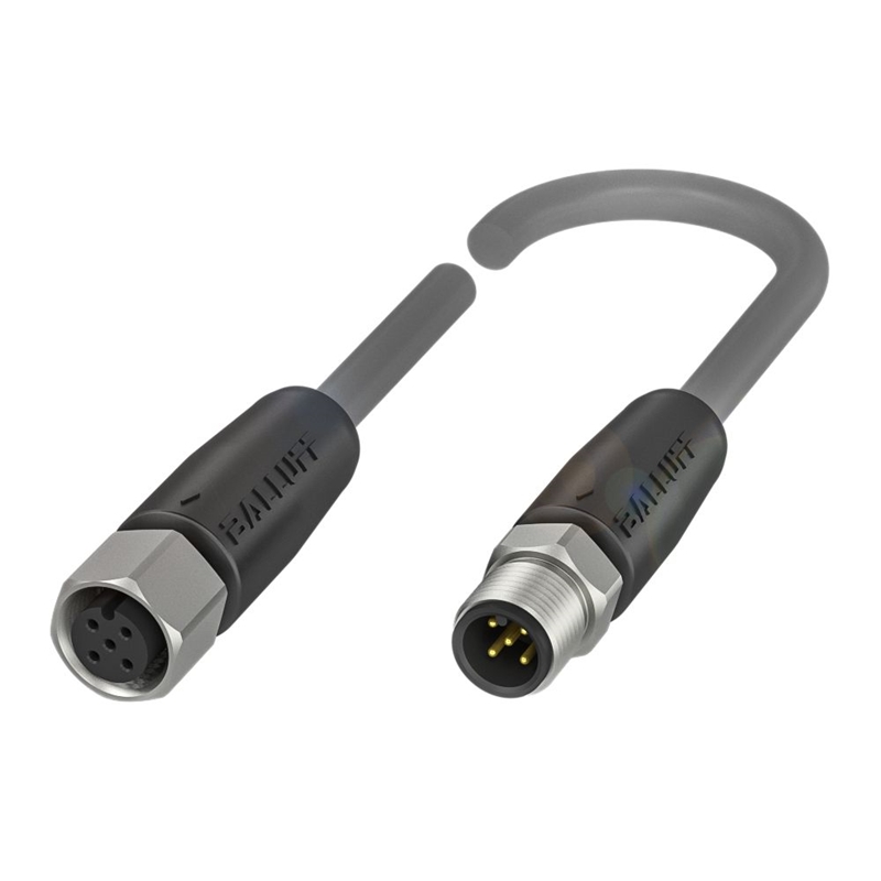 Connecteur / Câble de raccordement, Caractéristiques particulières: Washdown, Raccordement A: Connecteur M12x1 femelle, droit, 5 pôles, codé-A, Raccordement B: Connecteur M12x1 mâle, droit, 5 pôles, codé-A, Câble: PVC blindé gris, 0.3 m, compatible chaînes porte-câbles, Nombre de conducteurs: 4, Température de câble, pose fixe: 40...105 °C, Température de câble, pose flexible: 5...105 °C, Tension d'emploi Ub: 250 VDC / 250 VAC, Courant nominal (40 °C): 4.0 A, Classe de protection: IP67/IP67, IP68, IP69K, Homologation / conformité: CE, Ecolab, WEEE