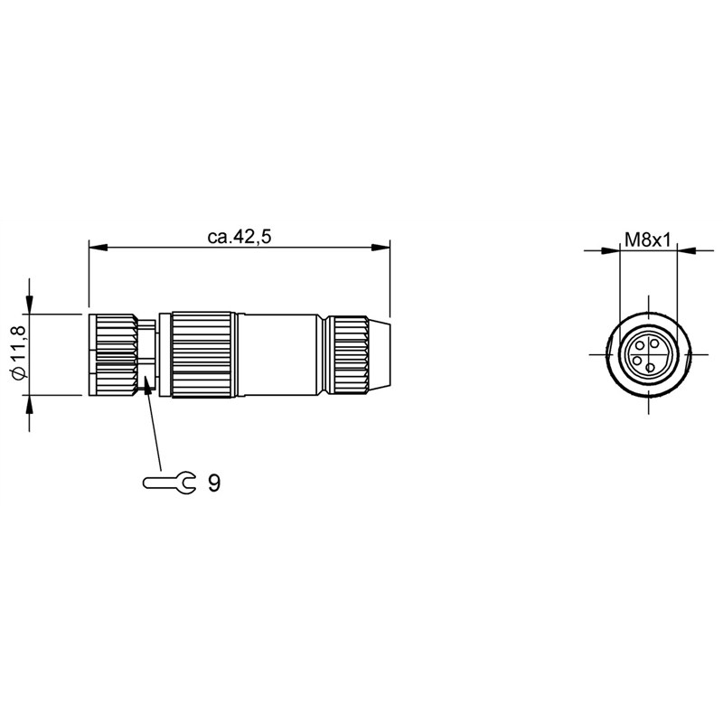 • Type: Connecteur M8 x 1, confectionnable
