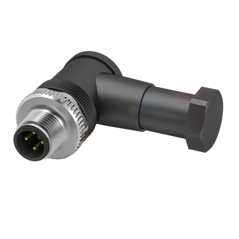 Connecteur, Raccordement: Connecteur M12x1, mâle, coudé, 4 pôles, codé-A, Nombre de contacts raccordables: 4, Section de raccordement: 0.14...0.75 mm², Fixation torons: Bornes à vis, Diamètre de câble D: 4...6 mm, Tension d'emploi Ub: 250 VDC / 250 VAC, Courant nominal (40 °C): 4.0 A, Classe de protection: IP67, Température ambiante: -40...85 °C, Homologation / conformité: CE, cURus, WEEE