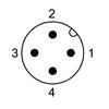 • Raccordement A: Connecteur M12, mâle, coudé, 4 pôles, codé A