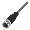 Connecteur / Câble de raccordement; Type: Câble de connexion, M12 x 1, surmoulé; Raccordement A: Connecteur M12, femelle, droit, 5 pôles, codé-A; Raccordement B: Extrémité de câble libre; Câble: 5.00 m, PVC, 5 fils (5 x 0.34 mm²), gris; Blindage: Non blindé; Compatible chaînes porte-câbles: Oui, (2 Mio.), 5 m/s²; Corps de poignée: PUR, noir; Matériau de l'écrou-raccord: Zinc moulé sous pression; Tension d'emploi Ub: 60 VDC / 60 VAC; Courant nominal (40 °C): 4.0 A; Classe de protection: IP67, IP68, IP69K; Température de câble, chaîne porte-câble: -5…60 °C; Température de câble, pose fixe: -40…105 °C; Température de câble, pose flexible: -5…105 °C; Homologation / conformité: CE, cULus, EAC, WEEE