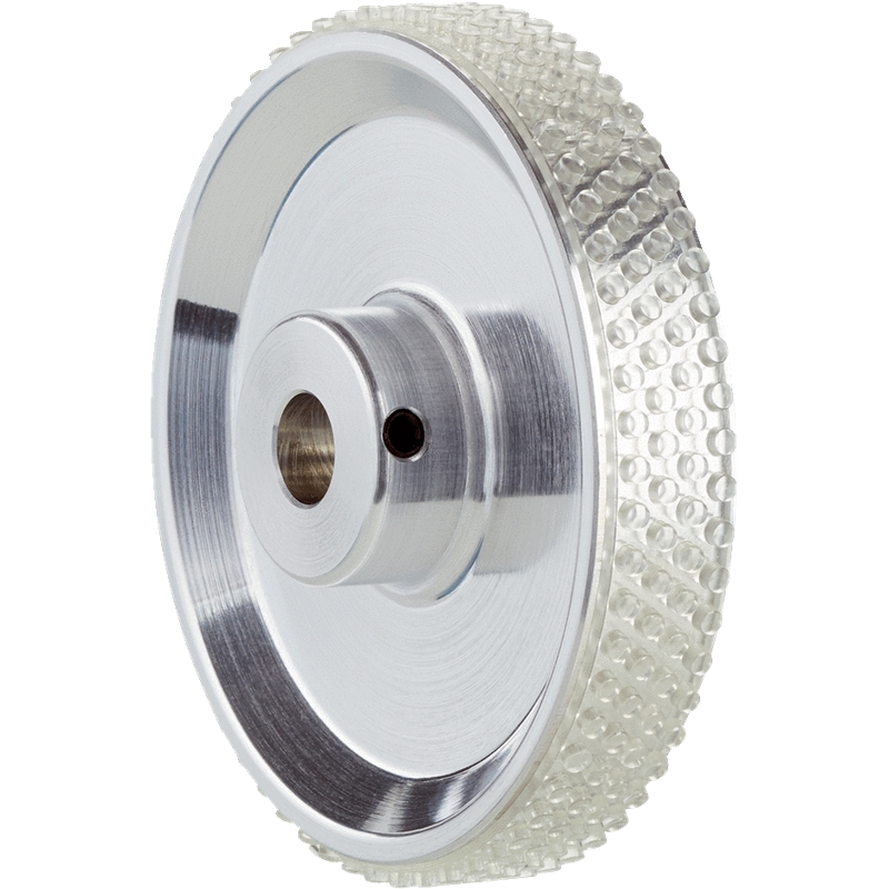 Accessoire de montage; Description: Roue de mesure en aluminium avec surface en polyuréthane à aspérités pour axe saillant 6 mm, circonférence 200 mm