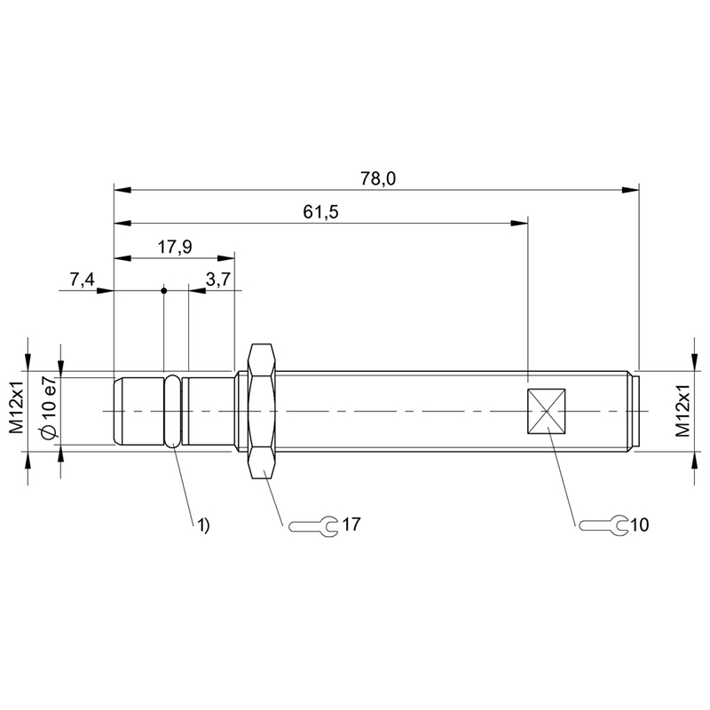 Capteur de proximité inductif résistant à la haute pression; Format: Cylindrique fileté, M12 x 1; Version électrique: 4 fils DC; Portée Sn: 1.50 mm; Montage: Noyable; Sortie de commutation: PNP; Type de commutation: Antivalente (NO+NF); Fréquence de commutation: 1000 Hz; Raccordement: Connecteur mâle M12, 4 pôles, codé-A; Tension d'emploi Ub: 10...30 VDC; Diamètre: Ø 12 mm; Longueur totale du boîtier: 78 mm; Longueur de filetage utile: 60 mm; Matériau du boîtier: Acier inoxydable (1.4104); Face sensible, matériau: EP; Température ambiante: -25...80 °C; Résistance à la pression max.: 500 bar; Classe de protection: IP68; Homologation / conformité: CE, cULus, WEEE, UKCA