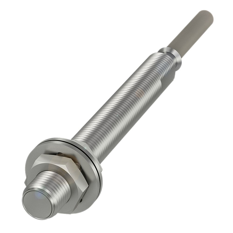 Capteur inductif, Dimensions: Ø 5 x 42 mm, Modèle: M5x0,5, Montage: noyable, Portée: 0,8 mm, Sortie de commutation: NPN à fermeture (NO), Fréquence de commutation: 1,5 kHz, Matériau du boîtier: Acier inoxydable (1.4104), Face sensible, matériau: Céramique, Raccordement: Câble, 5 m, Silicone, Tension d'emploi Ub: 10...30 VDC, Température ambiante: 0...135 °C, Classe de protection: IP67, Homologation / conformité: CE, UKCA, cULus, WEEE