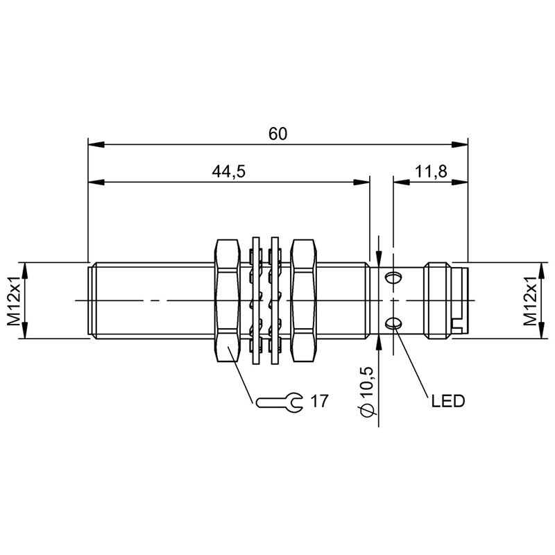 Capteur inductif, Dimensions: Ø 12 x 60 mm, Modèle: M12x1, Montage: quasi noyé, Portée: 3.5...7 mm, Interface: IO-Link 1.1, Sortie de commutation: 2x PNP/NPN/push-pull à fermeture/ouverture (NO/NF), Fréquence de commutation: 500 Hz, Matériau du boîtier: Laiton, revêtement sans nickel, Face sensible, matériau: PBT, Raccordement A: Connecteur, connecteur M12x1, mâle, 4 pôles, Tension d'emploi Ub: 18...30 VDC, Température ambiante: -25...70 °C, Classe de protection: IP68, selon BWN Pr 20, Homologation / conformité: CE, UKCA, cULus, WEEE