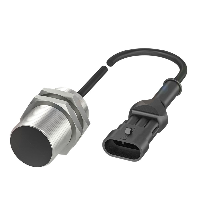 Capteur inductif, Dimensions: Ø 30 x 53 mm, Modèle: M30x1,5, Montage: noyable, Portée: 15 mm, Sortie de commutation: PNP à fermeture (NO), Fréquence de commutation: 100 Hz, Matériau du boîtier: Laiton, revêtement sans nickel, Face sensible, matériau: PA 12, Raccordement: Câble avec connecteur, AMP SUPERSEAL 3P, 3 pôles, 0.15 m, TPU, Tension d'emploi Ub: 10...30 VDC, Température ambiante: 25...70 °C, Classe de protection: IP67, Homologation / conformité: CE, UKCA, cULus, WEEE