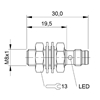 Capteur de proximité inductif; Format: Cylindrique fileté, M8 x 1; Version électrique: 3 fils DC; Portée Sn: 2.00 mm; Montage: Noyable; Sortie de commutation: PNP; Type de commutation: Contact à fermeture (NO); Fréquence de commutation: 1500 Hz; Raccordement: Connecteur mâle M8, 3 pôles; Tension d'alimentation: 10-30Vdc; Diamètre: Ø 8 mm; Longueur totale du boîtier: 30 mm; Longueur de filetage utile: 19,5 mm; Matériau du boîtier: Acier inoxydable; Face sensible, matériau: PBT; Classe de protection: IP68 (CEI 60529); Température ambiante: -25...70 °C; Homologation / conformité: CE, cULus, WEEE
