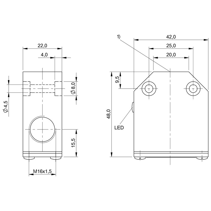 Capteur de proximité inductif; Format: Parallélépipédique; Version électrique: 3 fils DC; Portée Sn: 5.00 mm; Montage: Noyable; Sortie de commutation: PNP; Type de commutation: Contact à fermeture (NO); Fréquence de commutation: 500 Hz; Raccordement: Bornes à vis; Tension d'alimentation: 10-30 Vdc; Dimensions: 22.0x48.0x42.0 mm; Matériau du boîtier: Aluminium; Degré de protection selon CEI 60529: IP67; Température ambiante: -25...70 °C
