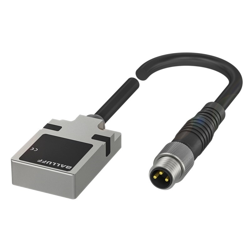Capteur de proximité inductif; Format: Parallélépipédique; Version électrique: 3 fils DC; Portée Sn: 7.00 mm; Montage: Noyable; Sortie de commutation: PNP; Type de commutation: Contact à fermeture (NO); Fréquence de commutation: 150 Hz; Raccordement: Câble 0,3 m PUR avec connecteur mâle M8 3 pôles; Tension d'alimentation: 10-30Vdc; Dimensions: 20.0x8.0x32.0 mm; Matériau du boîtier: Zinc, coulé sous pression; Classe de protection: IP67 (CEI 60529); Température ambiante: -25...70 °C