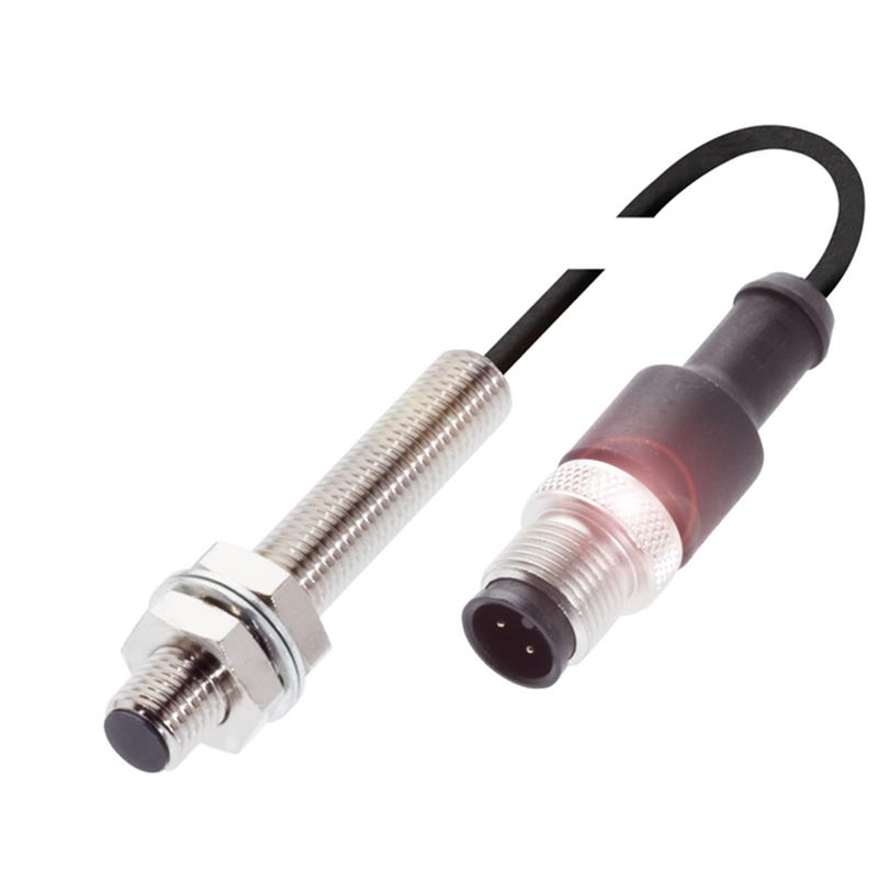 Capteur de proximité inductif; Format: Cylindrique fileté, M8 x 1; Version électrique: 3 fils DC; Portée Sn: 4.00 mm; Montage: Quasi noyé; Sortie de commutation: PNP; Type de commutation: Contact à fermeture (NO); Interface de communication: -; Raccordement: Câble 0,2 m PUR avec connecteur mâle M12 4 pôles; Tension d'alimentation: 10-30Vdc; Diamètre: Ø 8 mm; Longueur totale du boîtier: 59 mm; Longueur de filetage utile: 50 mm; Matériau du boîtier: Laiton; Classe de protection: IP67 (CEI 60529); Température ambiante: 0...60 °C