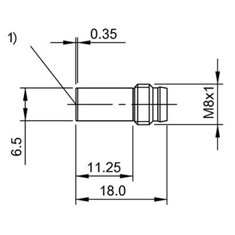 Capteur de proximité inductif; Format: Cylindrique lisse, D06.5; Version électrique: 3 fils DC; Portée Sn: 1.50 mm; Montage: Noyable; Sortie de commutation: PNP; Type de commutation: Contact à fermeture (NO); Fréquence de commutation: 3000 Hz; Raccordement: Connecteur mâle M8 3 pôles; Tension d'alimentation: 10-30Vdc; Diamètre: Ø 6.5 mm; Longueur totale du boîtier: 18 mm; Longueur utile: 11,25 mm; Matériau du boîtier: Acier inoxydable; Classe de protection: IP67 (CEI 60529); Température ambiante: -25...70 °C