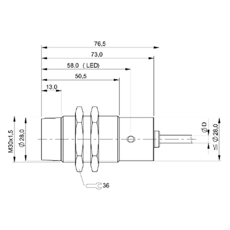 • Dimensions: Ø 30 x 76,5 mm