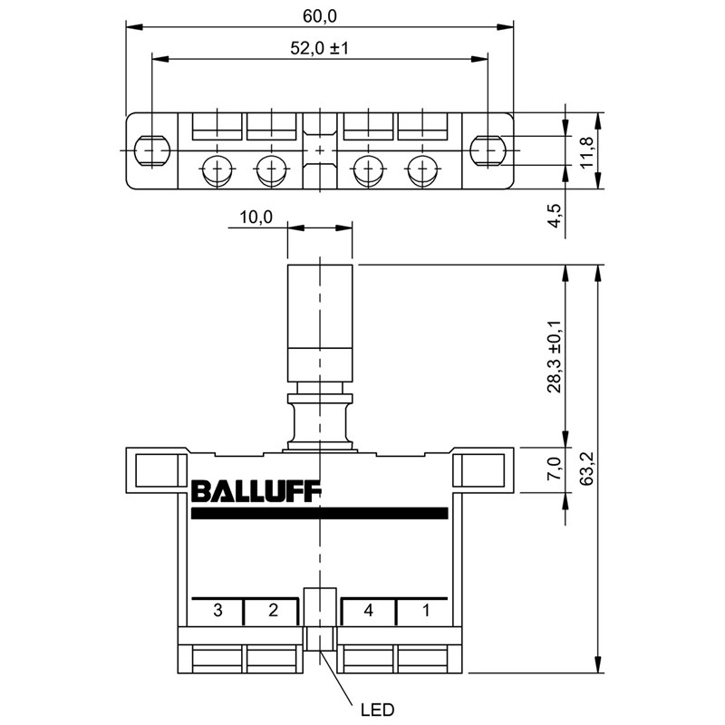 Capteur inductif, Dimensions: 60 x 11,8 x 63,2 mm, Matériau du boîtier: PA 12, Portée: 2 mm, Fréquence de commutation: 1. Elément de sortie: 1500 Hz, Tension d'emploi nominale Ue: 24 VDC, Montage: noyé, Type de raccordement: 1. Elément de sortie: Borne à vis, Température ambiante: -25...70 °C, Classe de protection: IP67, Homologation / conformité: CE, UKCA, WEEE