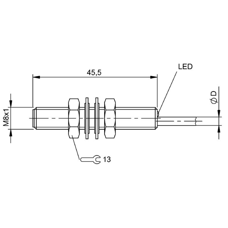 Capteur de proximité inductif; Format: Cylindrique fileté, M8 x 1; Version électrique: 3 fils DC; Portée Sn: 1.50 mm; Montage: Noyable; Sortie de commutation: PNP; Type de commutation: Contact à fermeture (NO); Fréquence de commutation: 1500 Hz; Raccordement: Câble, 5,00 m, PUR; Tension d'alimentation: 10-30Vdc; Diamètre: Ø 8 x 45,5 mm; Matériau du boîtier: Acier inoxydable; Face sensible, matériau: PBT; Classe de protection: IP67; Température ambiante: -25...70 °C