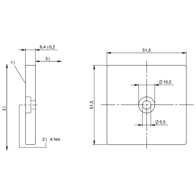 • Dimensions: 51,5 x 6,4 x 51,5 mm