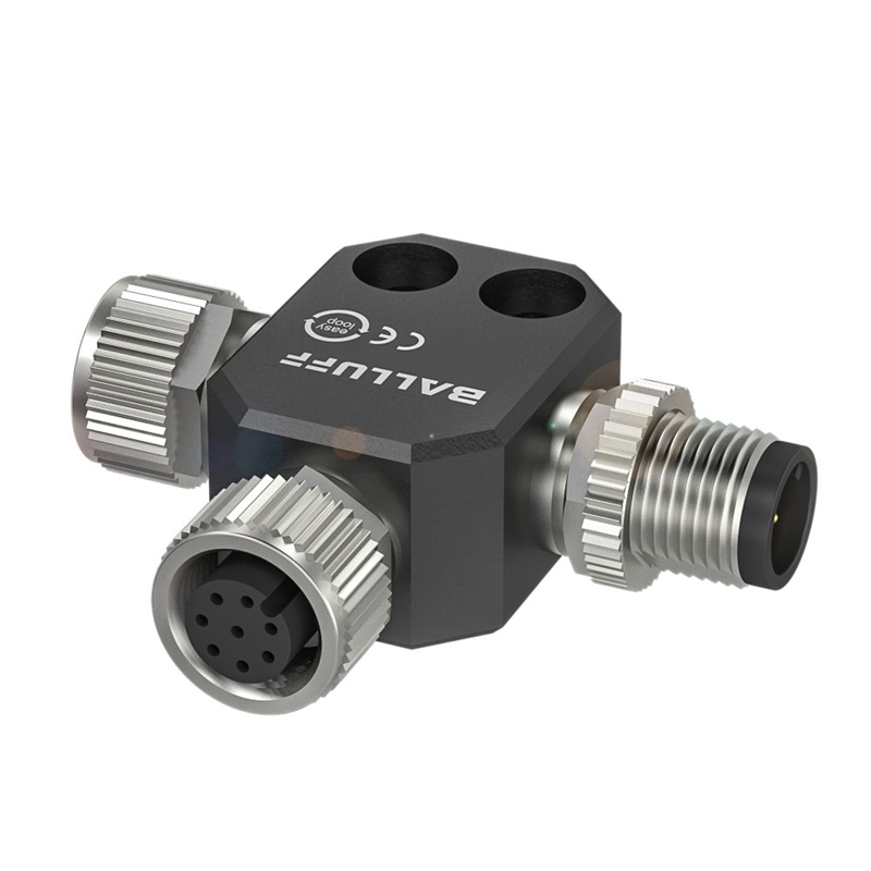 Connecteur / Câble de raccordement; Connecteur en T, Connexion 1: M12x1-Connecteur femelle, A-codé; Connexion 2: M12x1-Connecteur femelle, A-codé; Connexion 3: M12x1-Connecteur mâle, A-codé; Classe de protection: IP68; Homologation / conformité: CE, UKCA, WEEE