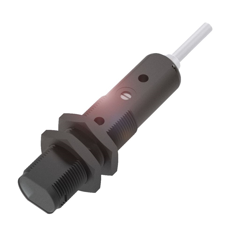 Détecteur de contraste, Série: 18KF, Dimensions: Ø 18 x 77 mm, Interface: PNP Contact à fermeture (NO) PNP Contact à ouverture (NF), Principe de fonctionnement: Détecteur de contraste, Principe de fonctionnement optique: Détecteur optique, focalisé, Caractéristique faisceau: focalisé, Type de lumière: LED lumière blanche, Taille du spot lumineux: Ø 4.5 mm à 10 mm, Portée: 8...12 mm, Raccordement: Câble, 2,00 m, PVC, Matériau du boîtier: PBT, Face sensible, matériau: PMMA, Tension d'emploi Ub: 10...30 VDC, Homologation / conformité: CE, UKCA, cULus, WEEE