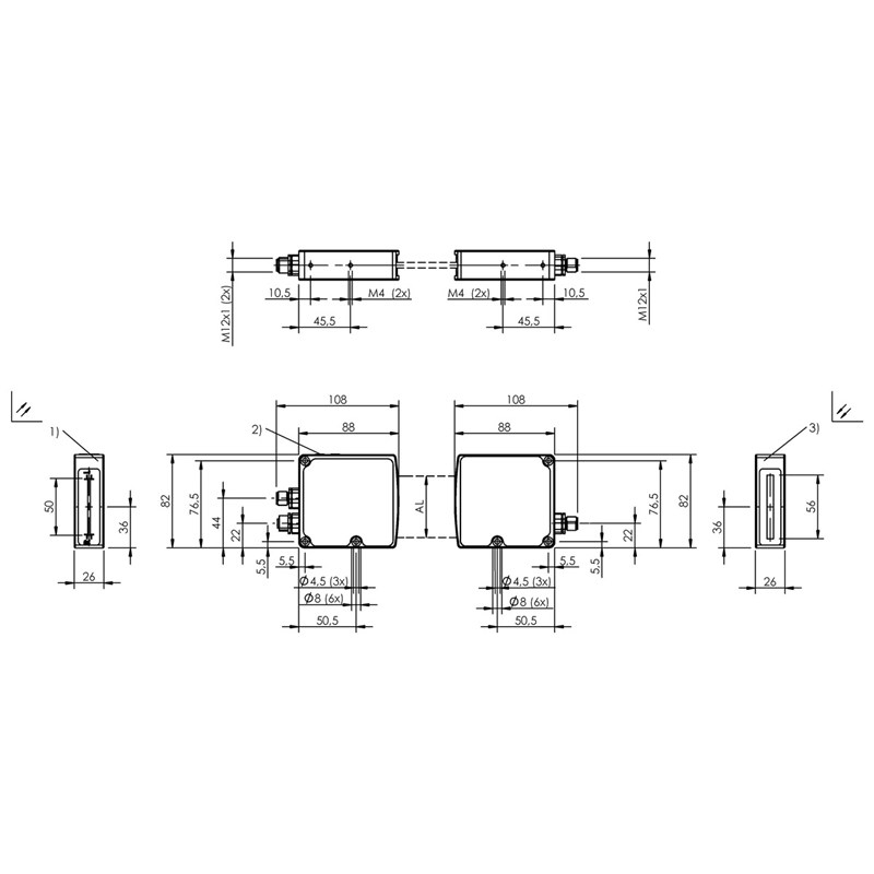 Bande lumineuse; Principe de fonctionnement: Bande lumineuse; Particularité optique: Technologie CCD; Portée: 0...2 m; Caractéristique faisceau: Bande lumineuse collimatée, largeur 54 mm; Source d'émission: Laser à lumière rouge; Sortie analogique: 2x 0…10 V / 4…20 mA; Sortie de comutation: 3x PNP/NPN; Type de commutation: Contact à fermeture (NO); Connexion 1: M12x1-Connecteur mâle, 4-pôles, A-codé; Connexion 2: M12x1-Connecteur femelle, 4-pôles, A-codé; Connexion 3: M12x1-Connecteur mâle, 8-pôles, A-codé; Matériau du boîtier: Aluminium, anodisé; Tension d'emploi Ub: 15...30 VDC; Homologation / conformité: CE, WEEE, cULus, UKCA; Série: D
