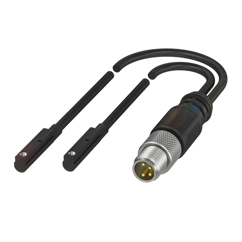 Capteur de proximité magnétique; Taille: 2.90x4.50x16.8 mm; Sortie: PNP; Mode de fonctionnement: Contact à fermeture (NO); Matériau boîtier PA 12; Degré de protection: IP67; Connexion: Câble avec connecteur; Domaine d'application: Grâce à la course de réponse