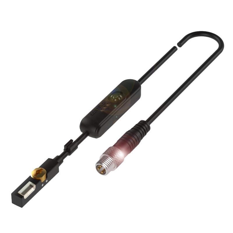 Capteur de proximité magnétique; Utilisation: Vérin pneumatique avec rainure en T; Fonction d'apprentissage : 2 points d'action; Sortie de communication: NPN; Type de commutation: Contact à ouverture (NF); Fixation: Insérable par le haut dans la rainure en T; Raccordement: Câble avec connecteur mâle M8, 4 pôles, 0,.3 m, PUR; Tension d'emploi Ub: 10-30Vdc; Dimensions: 23,5 x 6,2 x 5 mm; Matériau boîtier PA 12; Degré de protection: IP67; Température ambiante: -25...80 °C ; Homologation / conformité: CE, UKCA, cULus, WEEE