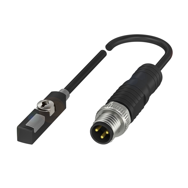 Capteur magnétique, Forme de rainure: Rainure en T, Dimensions: 23,5 x 5 x 5,5 mm, Principe de fonctionnement: Capteur magnétique, Raccordement: Connecteur M8x1, mâle, 3 pôles, Câble: TPU, 0.3 m, Utilisation: Vérin pneumatique avec rainure en T. Dimensions, voir croquis dans la vue du produit., Fixation: insérable par le haut dans la rainure en T, Matériau du boîtier: PA 12, Sortie de commutation: PNP à fermeture (NO), Fréquence de commutation: 3000 Hz, Tension d'emploi Ub: 10...30 VDC, Température ambiante: 25...85 °C, Classe de protection: IP67, Homologation / conformité: cULus, CE, UKCA, WEEE