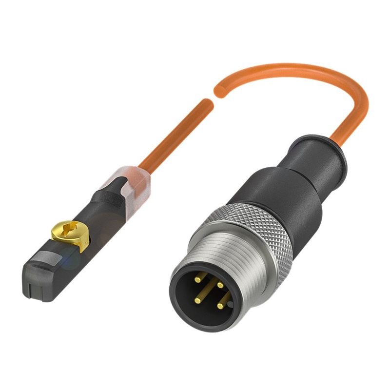 Capteur magnétique, Forme de rainure: Rainure en T, Dimensions: 5 x 6,4 x 34 mm, Principe de fonctionnement: Capteur magnétique, Raccordement A: Connecteur M12x1, mâle, 4-pôles, codé A, Câble: TPU résistant aux étincelles de soudage orange, 300 mm, Utilisation: Vérin pneumatique avec rainure en T. Dimensions, voir croquis dans la vue du produit., Zone de soudage, Fixation: insérable par le haut dans la rainure en T, Matériau du boîtier: PA 12, Interface: IO-Link 1.1, Sortie de commutation: E/S configurables Contact à fermeture/ouverture (NO/NF), Tension d'emploi Ub: 18...30 VDC, Température ambiante: 0...80 °C, Classe de protection: IP67, Homologation / conformité: CE, UKCA, cULus, WEEE
