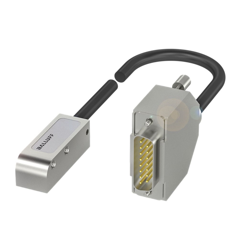 Système de mesure linéaire magnétique, Dimensions: 14 x 13 x 40 mm, Raccordement: Câble avec connecteur, connecteur DSub mâle, 15 pôles, 1,2 m, PUR, Matériau du boîtier: Aluminium, Interface: SSI;Analogique sin/cos (1 Vpp ± 0,35 V), Plage de mesure: 997 mm, Résolution: 0,9765625 µm, Distance de lecture: 0.01...0.35 mm, Écart de linéarité max.: ±7 µm, Tension d'emploi Ub: 4,75...5,25 VDC, Température ambiante: 20...80 °C, Classe de protection: IP67, Sens de déplacement: dans le sens longitudinal par rapport à la bande magnétique, Codage interface: Binaire, Homologation / conformité: CE, UKCA, WEEE