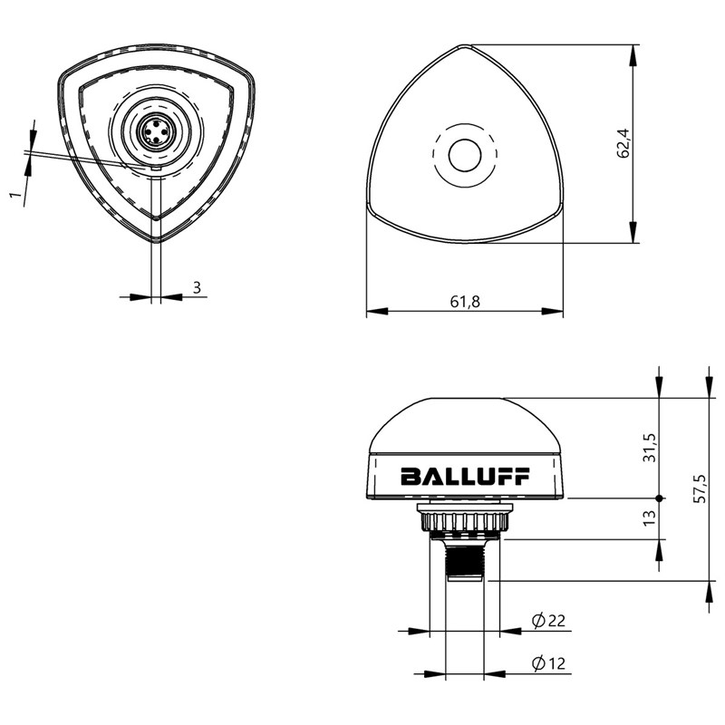 Feu de signalisation LED; Principe de fonctionnement: Témoin lumineux; Segments, nombre max.: 6; Couleurs, nombre: 7; Couleurs prédéfinies: jaune, blanc, vert, bleu, rouge, orange, configurable; Visualisation d'état: Mode défilant, Mode Level, Mode segment, Mode cercle chromatique ; Fonction additionnelle: Daisy Chain (2x appareils par port IO-Link); Interface: IO-Link 1.1, COM2 (38,4 kbauds) ; Fixation: Vis M22; Raccordement: Connecteur mâle M12 4 pôles; Tension d'emploi Ub: 18...30.2 VDC; Dimensions: 61,8 x 62,4 x 57,5 mm ; Matériau du boîtier: PC, transparent, PPS ; Classe de protection: IP67; Température ambiante: -5...55 °C; Série: SmartLight