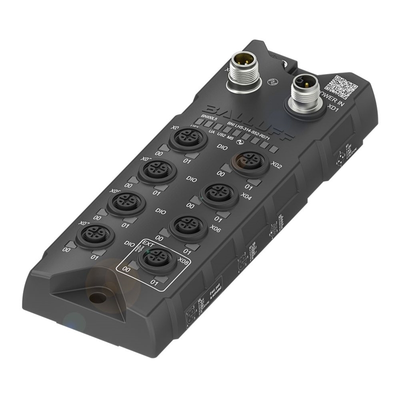 Répartiteur actif, Interface: IO-Link 1.1.3, Tension d'emploi Ub: 18...30,2 VDC, Connexion (COM 1): Connecteur M12x1 mâle, 4 pôles, codé-A, Connexion (alimentation en tension IN): Connecteur M12x1 mâle, 5 pôles, Lcodé, Connexion emplacements: 8x Connecteur M12x1 femelle, 5 pôles, codé-A, Entrées numériques: 16x PNP/NPN, Type 1, Type 3, Sorties numériques: 16x PNP, Entrées/sorties configurables: oui, Port d'extension: oui, Surveillance individuelle des canaux: oui, Fonction additionnelle: Vibration, Internal temperature, Découverte des appareils, Courant total US, capteur: 2 A, Courant total UA, actionneur: 16 A, Courant de commut.: 12x 2 A, 4x 4 A, Matériau du boîtier: PBT GF30 inserts : acier inoxydable, 1.4404, Dimensions: 68 x 38.3 x 183.5 mm, Température ambiante: 25...60 °C, Classe de protection: IP67, Etat vissé, Vitesse de transmission: COM3 (230,4 kbauds), Cycle des données de processus min.: 2 ms, Données de processus IN: 12 Byte, Données de processus OUT: 2 Byte, Secondary features: Basic Statistics, Boot Cycle Counter, Device Discovery, Extreme Environment Status, Identification, Logic Blocks, Operating Hours Counter, Signal Delay, Signal Speed Monitor, Switching Counter, Variant Configuration, Voltage et Current Monitoring, Secondary features pour condition monitoring: Internal temperature monitoring, Vibration monitoring, Inclination monitoring et installation aid