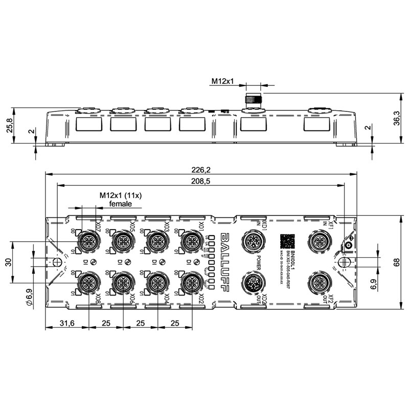 • Connexion emplacements: 8x M12x1-Connecteur femelle, 5-pôles, A-codé
