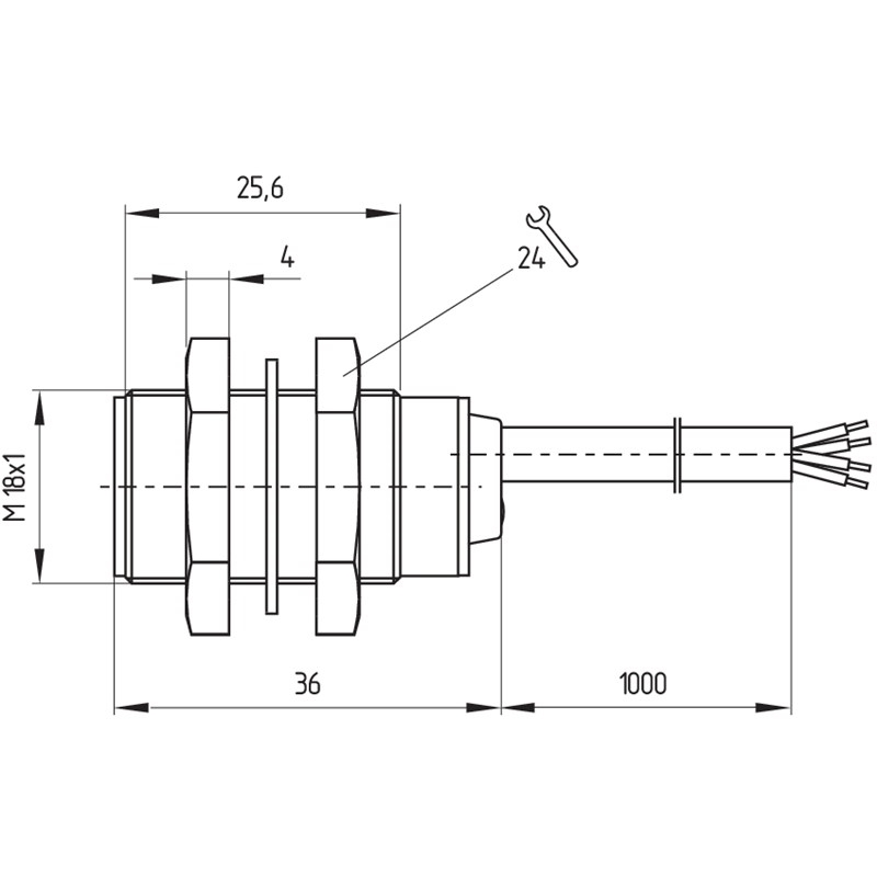 • Raccordement: Câble 1 m, 6 x 0,25 mm², PVC
