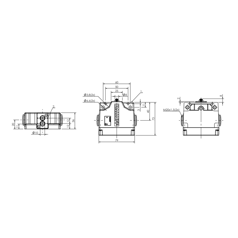 Interrupteur de position mécanique; Modèle: 61; Version: Sécurité DIN EN 60204-1; Nombre d'éléments de sortie: 2x Roulement; Entraxe entre contacts: 12 mm; Principe actif: (1-2) mécanique; Courant permanent: (1-2) 6 A; Tension d'emploi nominale Ue: (1-2) 250 VAC; Montage: Vertical; Direction d’approche: Dans l'axe longitudinal, parallèle à la surface de vissage; Vitesse d'approche: (1-2) 80 m/min; Type de raccordement: (1-2) Borne à vis; Dimensions: 79 x 36 x 73 mm; Matériau du boîtier: Aluminium, anodisé; Température ambiante: -5...85 °C; Classe de protection: IP67; Homologation / conformité: CE, UKCA, CCC, WEEE; Série: 813
