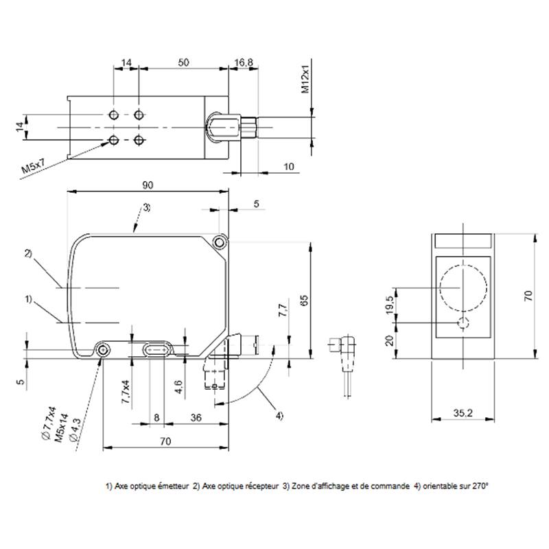 • Mode de raccordement: Connecteur mâle M12, 8 pôles, orientable