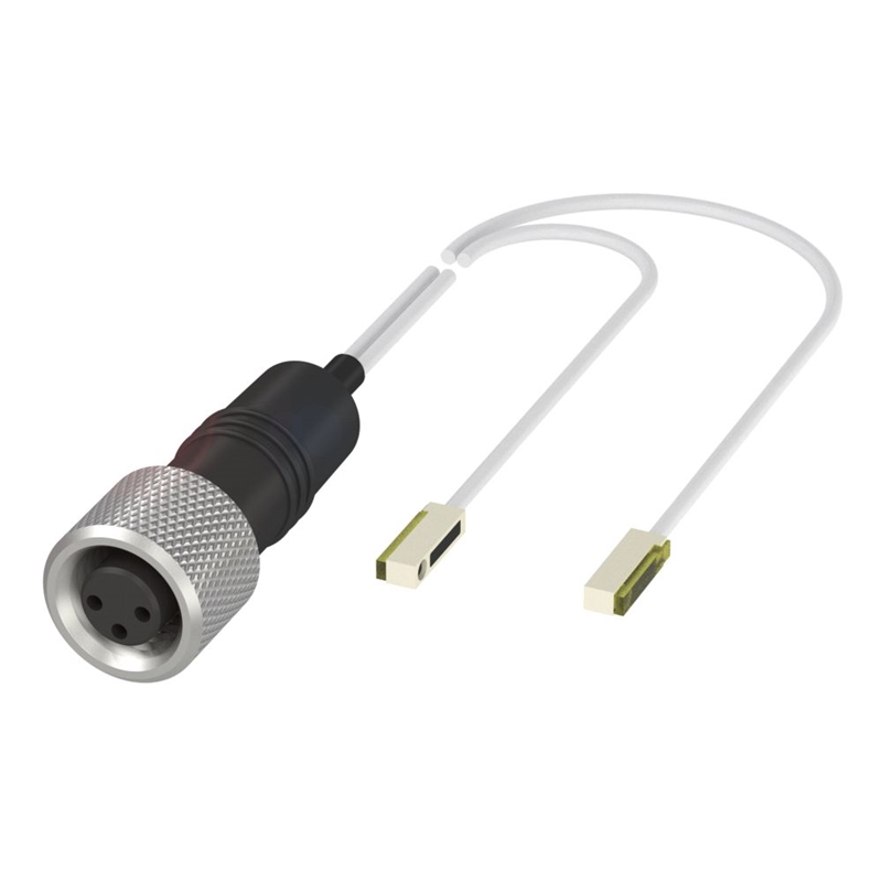 Tête de capteur optique, Série: R002, Dimensions: 2,4 x 1,5 x 7 mm, Interface: pour amplificateur-relais, Principe de fonctionnement: Tête de capteur optique, Principe de fonctionnement optique: Barrage optique unidirectionnel, Caractéristique faisceau: divergent, Type de lumière: LED à infrarouge, Taille du spot lumineux: Ø 30 mm, Portée: 0 m...800 mm, Raccordement A: Câble avec connecteur, connecteur M8x1, femelle, 3 pôles, 1 m, PFA, Matériau du boîtier: LCP, Nature Fibre optique en résine époxy, Face sensible, matériau: Époxy, Fixation: Bornes, Collage, Plus petite pièce typ.: 0.1 mm, Homologation / conformité: CE, UKCA, WEEE
