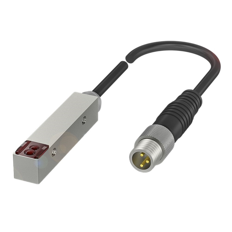 Capteur optoélectronique, Série: Q08M, Dimensions: 8 x 44 x 8 mm, Interface: NPN Contact à fermeture (NO), Principe de fonctionnement: Capteur optoélectronique, Principe de fonctionnement optique: Détecteur optique, triangulation, Particularité optique: Suppression de l'arrière-plan fixe, Caractéristique faisceau: divergent, Type de lumière: LED à lumière rouge, Taille du spot lumineux: Ø 3 mm Sortie lumière, Portée: 5...30 mm, Raccordement A: Câble avec connecteur, connecteur M8x1, mâle, 3 pôles, 0,20 m, PUR, Matériau du boîtier: Zinc, Coulé sous pression, nickelé, Face sensible, matériau: PMMA, Tension d'emploi Ub: 10...30 VDC, Homologation / conformité: CE, UKCA, cULus, WEEE