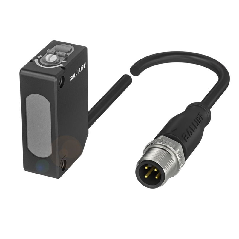 Capteur photoélectrique, Série: R090K, Dimensions: 10.7 x 32.7 x 19.5 mm, Interface: PNP à fermeture/ouverture (NO/NF), Principe de fonctionnement: Capteur photoélectrique, Principe de fonctionnement optique: Détecteur optique, énergétique, Caractéristique faisceau: divergent, Type de lumière: LED à infrarouge, Taille du spot lumineux: Ø 70 mm à 500 mm, Portée: 0...1000 mm, Raccordement: Câble avec connecteur, Connecteur M12x1 mâle, 4 pôles, 0,30 m, PVC, Matériau du boîtier: PC PBT, Face sensible, matériau: PMMA, Tension d'emploi Ub: 10...30 VDC, Homologation / conformité: CE, WEEE, UKCA