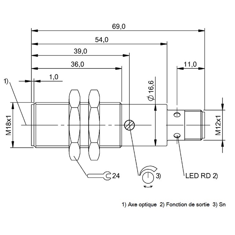 • Format: Cylindrique fileté, M18x1, faisceau axial